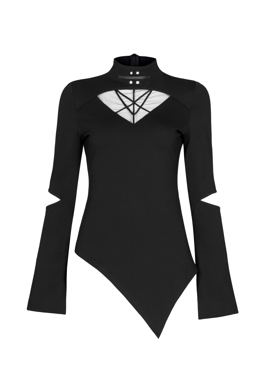 Découpe au dessus de la poitrine avec empiècement en tissu résille