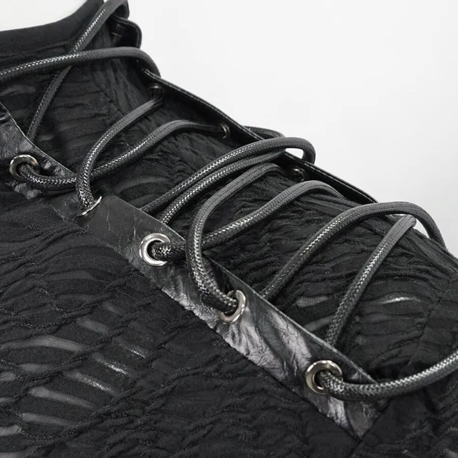 Cordage décoratif sur les épaules relié par oeillets sur des pièces en simili cuir
