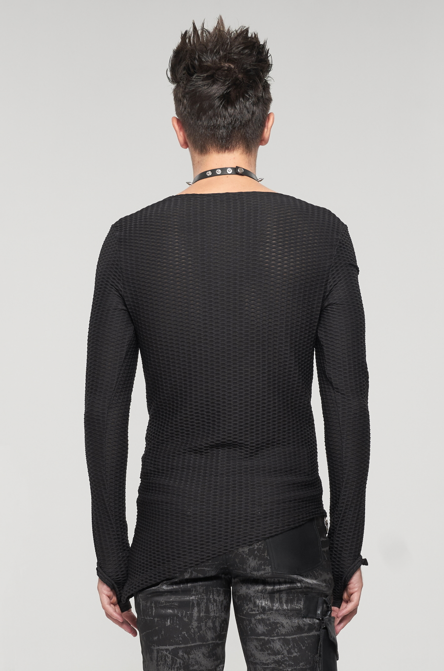 Ce pull signé Devil fashion est fabriqué dans un tissu à mailles larges légèrement transparent
