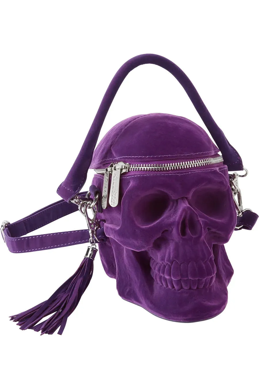 Crâne humain en polyester moulé recouvert de luxueux velours violet