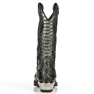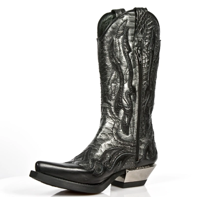 Santiags en cuir noir et gris New Rock ‘west collection’