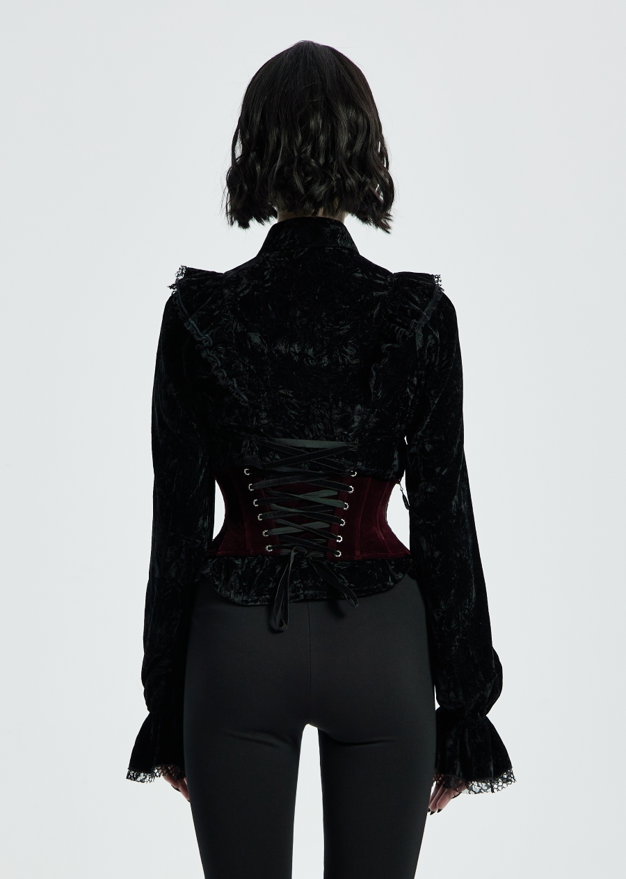 Superbe serre-taille en luxueux velours bordeaux par Punk Rave