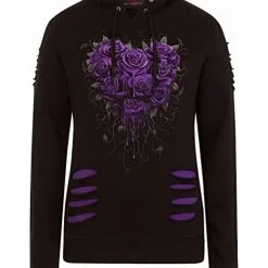 Le grand sweat à capuche déchiré violet-noir est fabriqué en 100 % coton de qualité supérieure, utilisant des colorants réactifs, sans azoïque et respectueux de la peau.