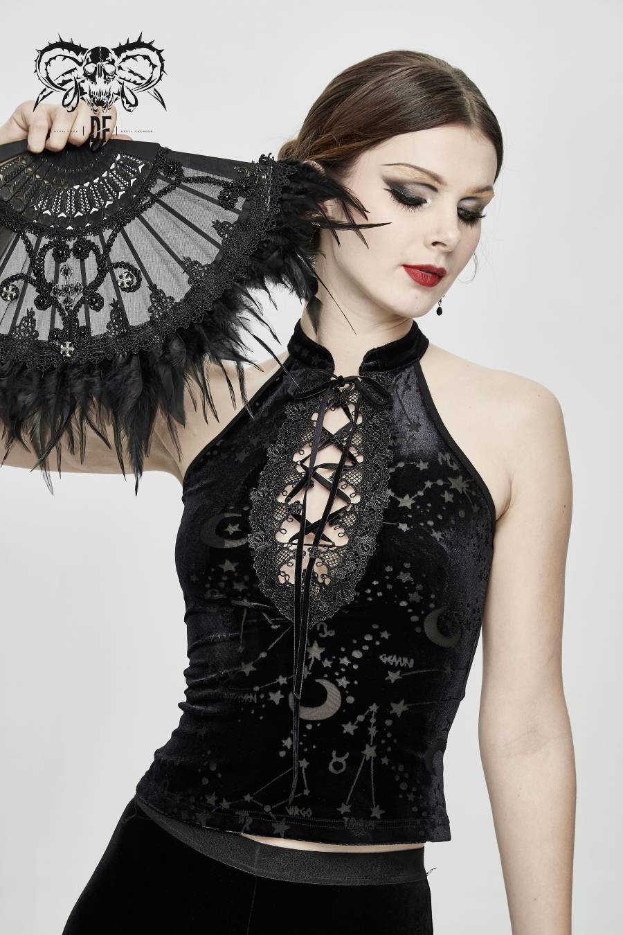 Le velours est décoré de lunes et signes astrologiques transparants apportant un style original