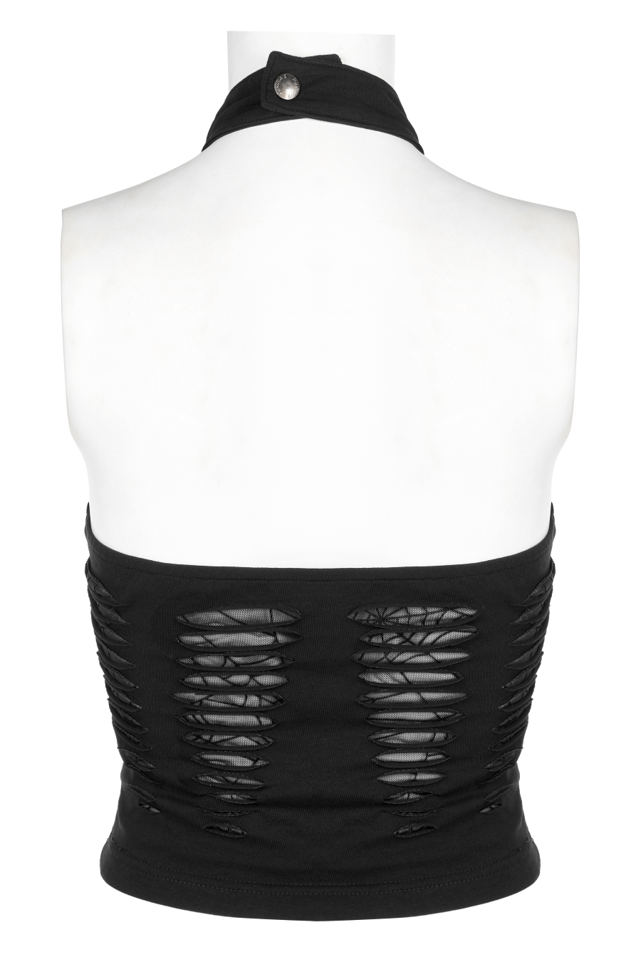 Beau top Punk Rave composé d’un tissu résille toile d’araignée recouvert d’un tissu de coton découpé