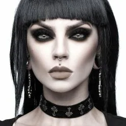 Il est orné de nombreuses croix gothiques en métal finement ciselé